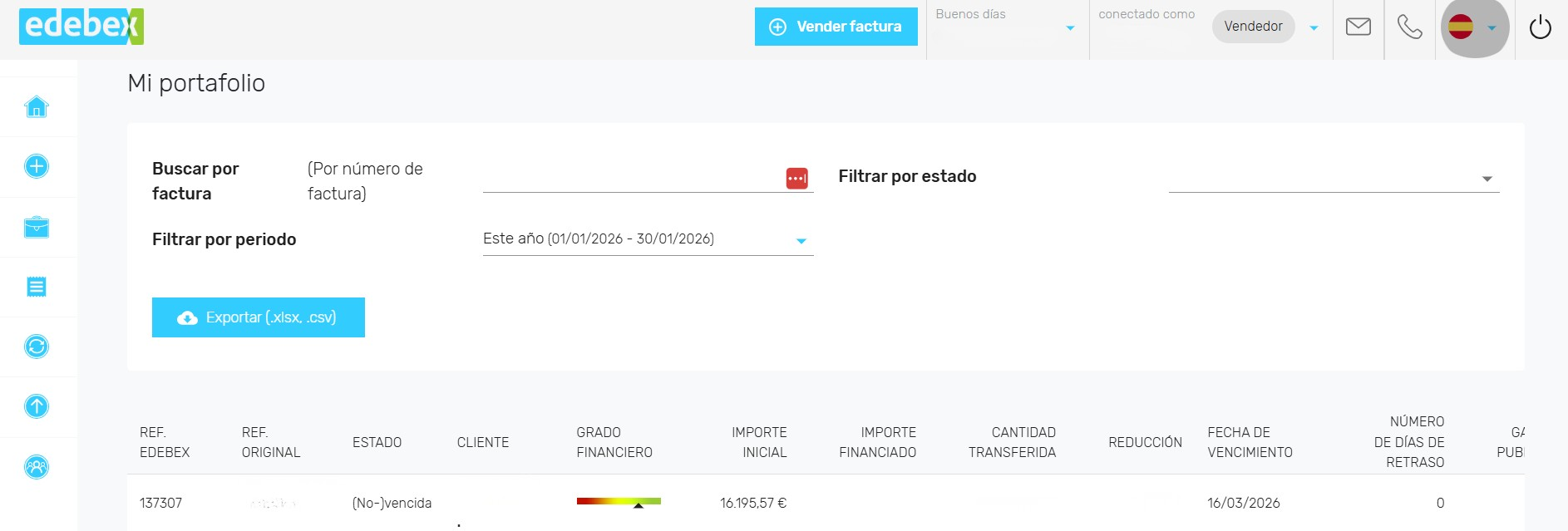 – Factura vendida: La venta de tu factura ha sido completada. Se ha recibido el importe de venta de la factura en tu cuenta. La cesión/subrogación se notifica a tu cliente.