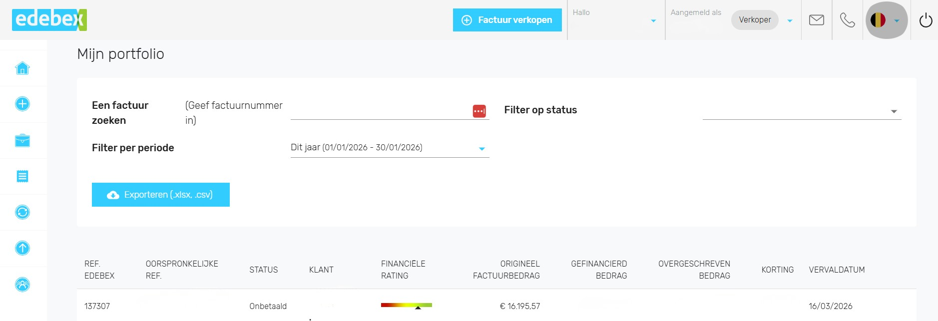 Verkocht : Uw factuur werd aangekocht en de verkoopprijs werd op uw bankrekening gestort. Uw klant werd op de hoogte gesteld van de schuldoverdracht.